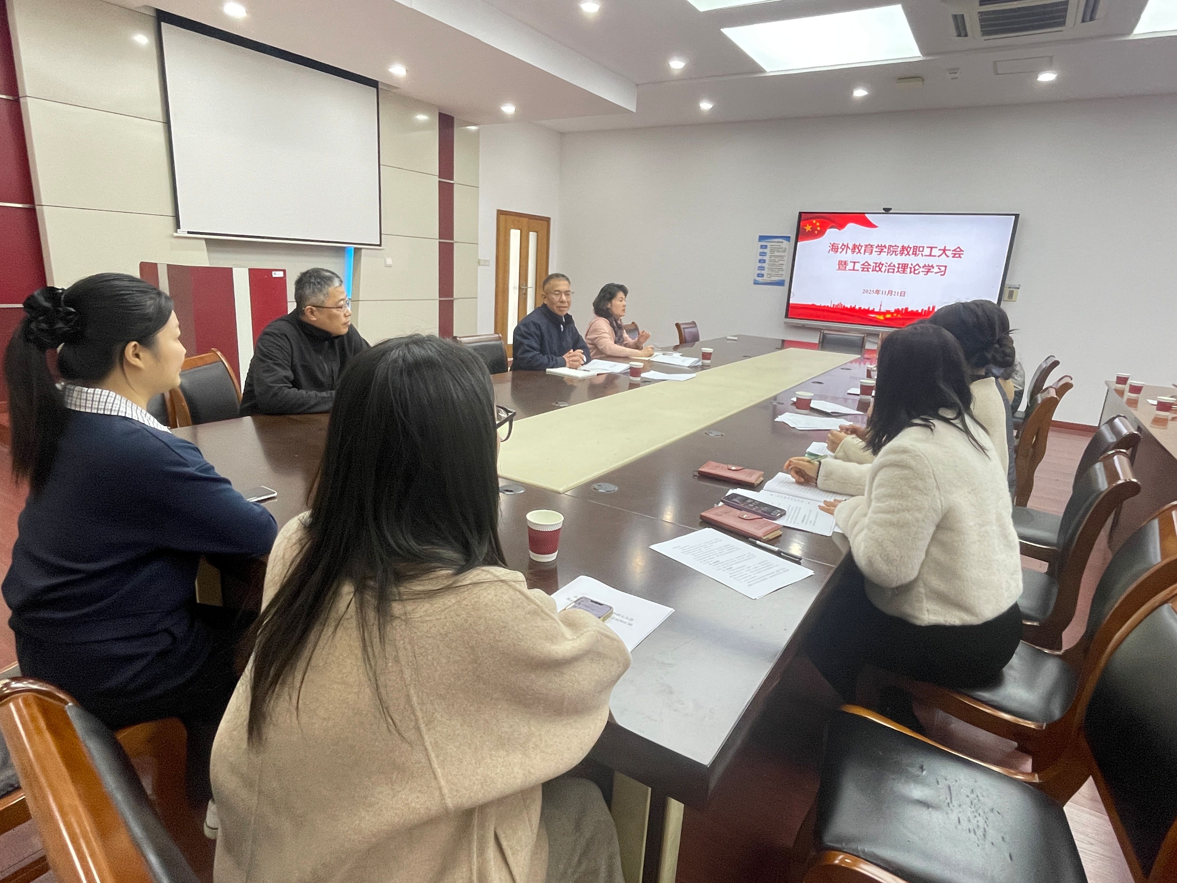 海外教育学院召开教职工大会暨学院工会政治理论学习