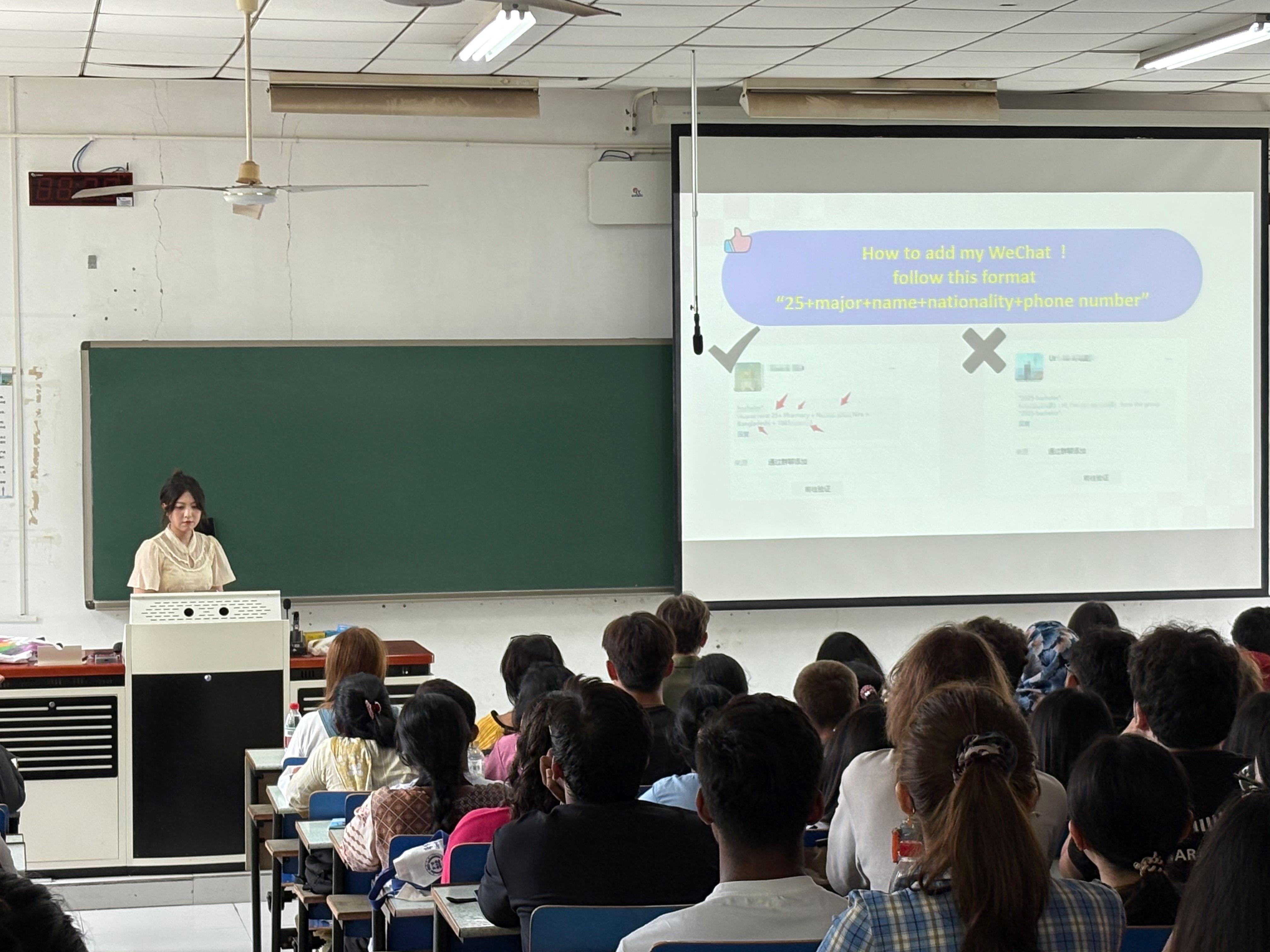 无规矩不成方圆。9月12日,学院组织全体新生参加“校规校纪与生活指南”讲座。留管办辅导员邢露萍老师围绕《来华留学生手册》和《留学生生活指南》,对签证管理、住宿规定、学术诚信、校园设施使用等重点内容进行了详实清晰的解读,为新生尽快适应和融入校园生活奠定了基础。