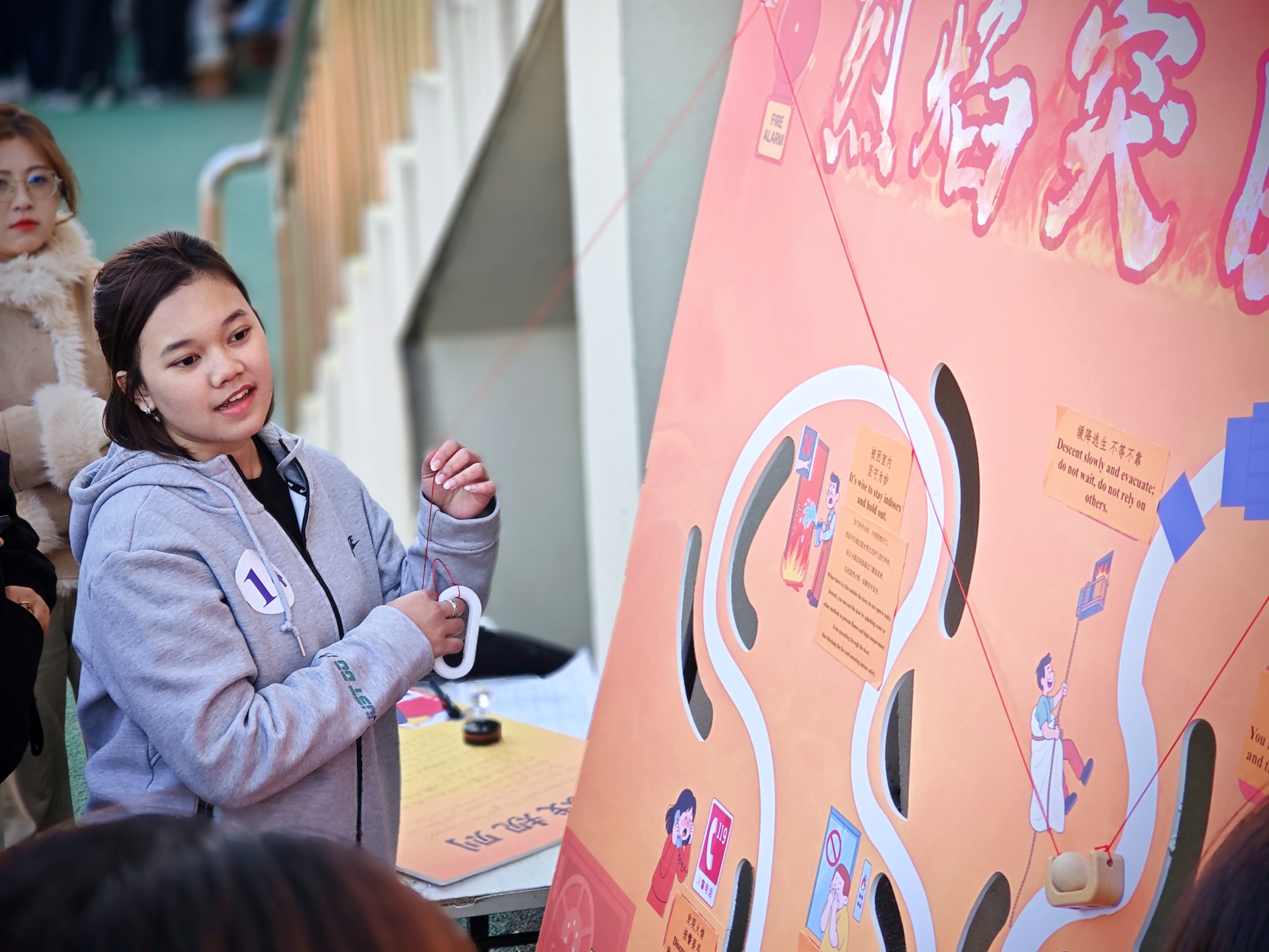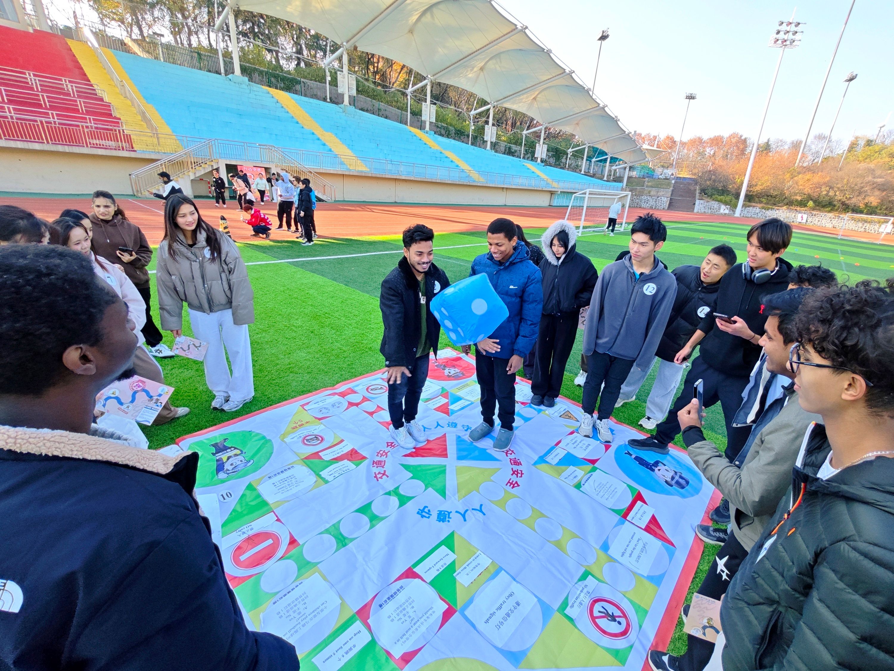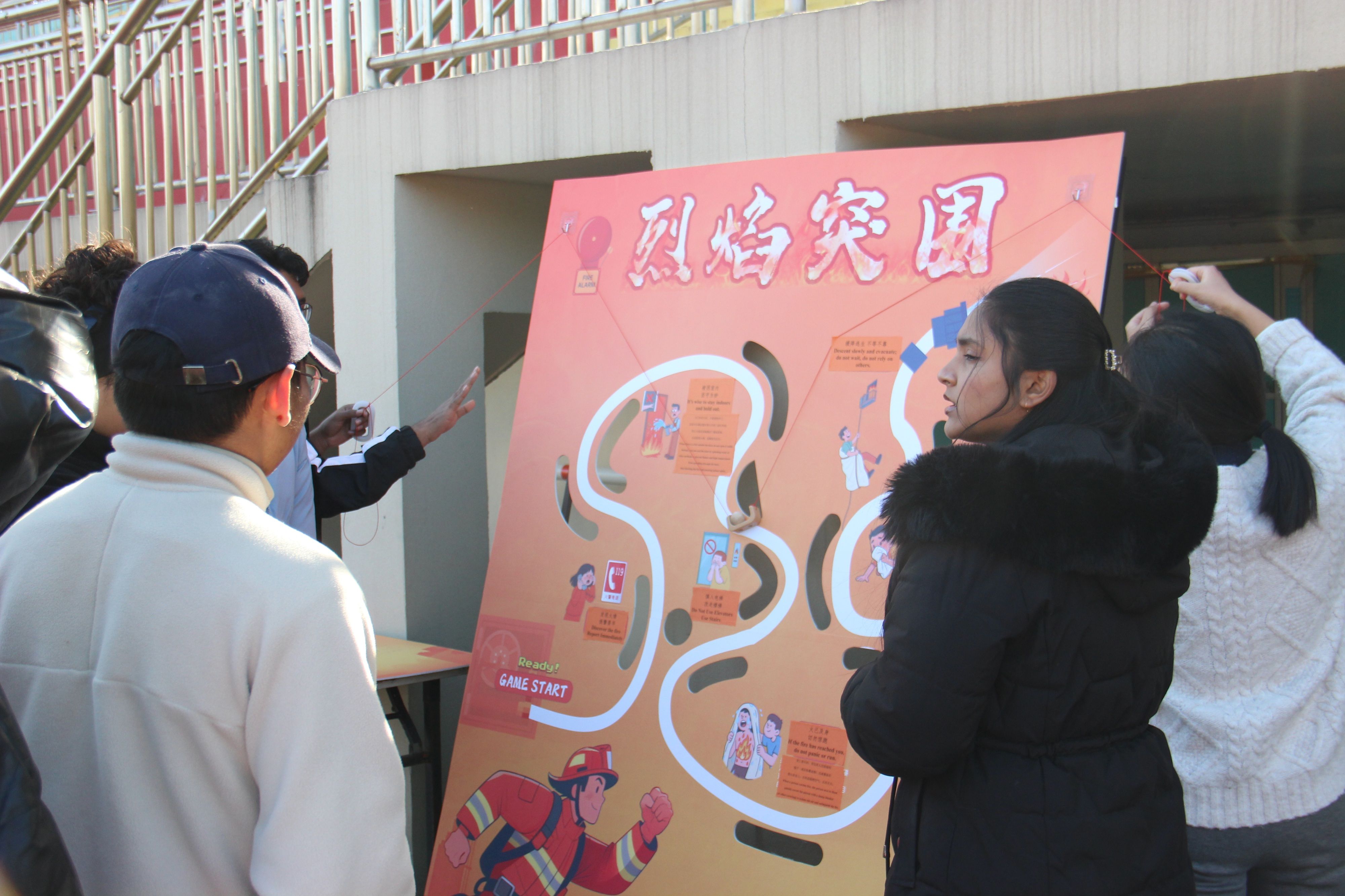 实验室安全区的警示标识识别、安全隐患收集摊位的互动留言……每个环节都巧妙融入了安全教育内容,让中外学生们在团队协作中既巩固了安全知识,也锻炼了跨文化沟通能力。