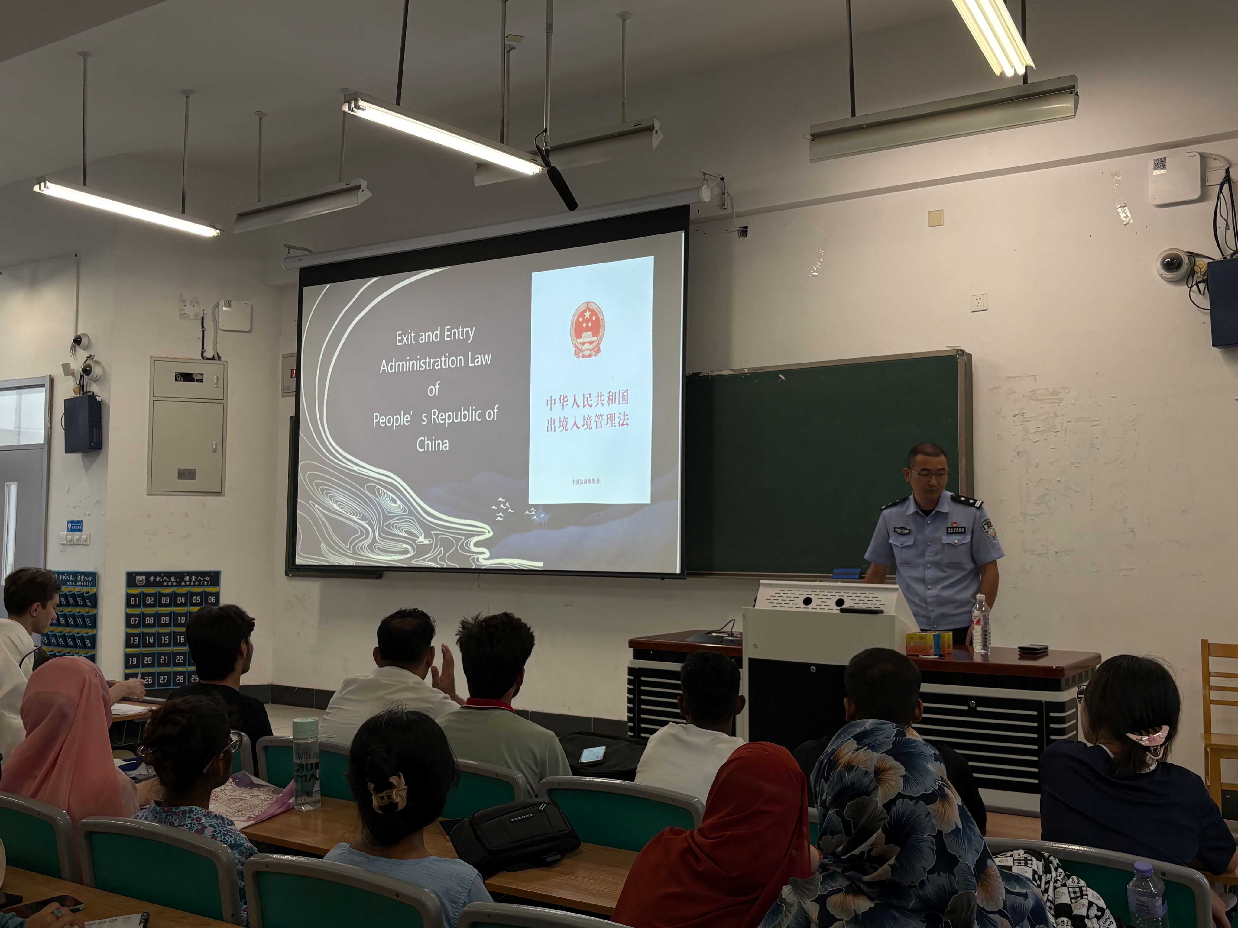 安全是留学生活的基石,也是学院坚守的工作生命线。本次入学教育在安全知识方面建立了“校园-社会-法律”三个教育层面。在校园层面,保卫处梁俊老师于9月9日下午开展的校园安全知识讲座,全面讲解了防火、防盗、防诈骗等日常安全常识。在社会层面,9月15日上午的保险知识讲座,为新生们提供了应对意外风险的经济保障。学院层层递进,9月12日下午,特邀江北新区公安分局吴越警官为留学生带来法律安全知识讲座, 重点讲解了与留学生密切相关的签证、居留许可、非法打工等法律法规,并结合真实案例进行了深入剖析。9月18日,法制法规教育课程也如期开展系列专题教学,该课程由市出入境的警官分8次课给留学生上好在华法律基础与实践指导课。作为新生入学教育的延续,学院对留学生法律法规意识的建立、加强和持续性输出,极大地增强了新生们“知法、懂法、守法”的意识,为他们在中国平安、合法地学习生活标注了“红线”、指明了方向。