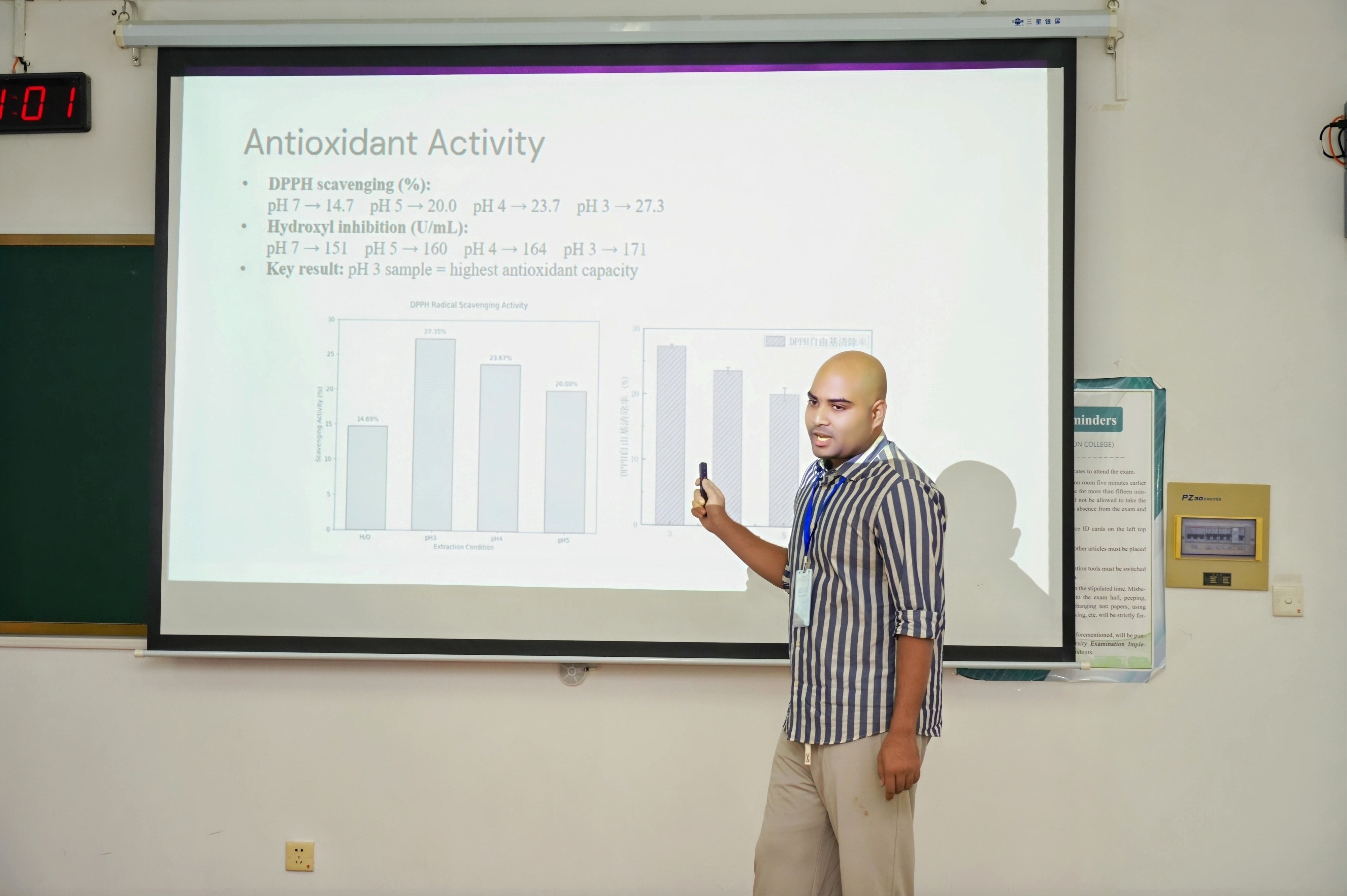 海外教育学院和专业培养学院精心组织下,我校来华留学研究生积极投稿,其中2名留学研究生的论文经层层筛选,入选本次大会线下交流环节,学生分别在理工农”和“生物医药”分论坛作学术报告展示。经过激烈角逐,凭借精彩的学术报告,食品与轻工学院硕士生ANIK KHAN倪安康(指导教师:续晓琪)荣获学术论文奖等奖;生物与制药工程学院博士生CLARA APPIAH克拉拉(指导教师:赵晔)荣获学术论文奖三等奖