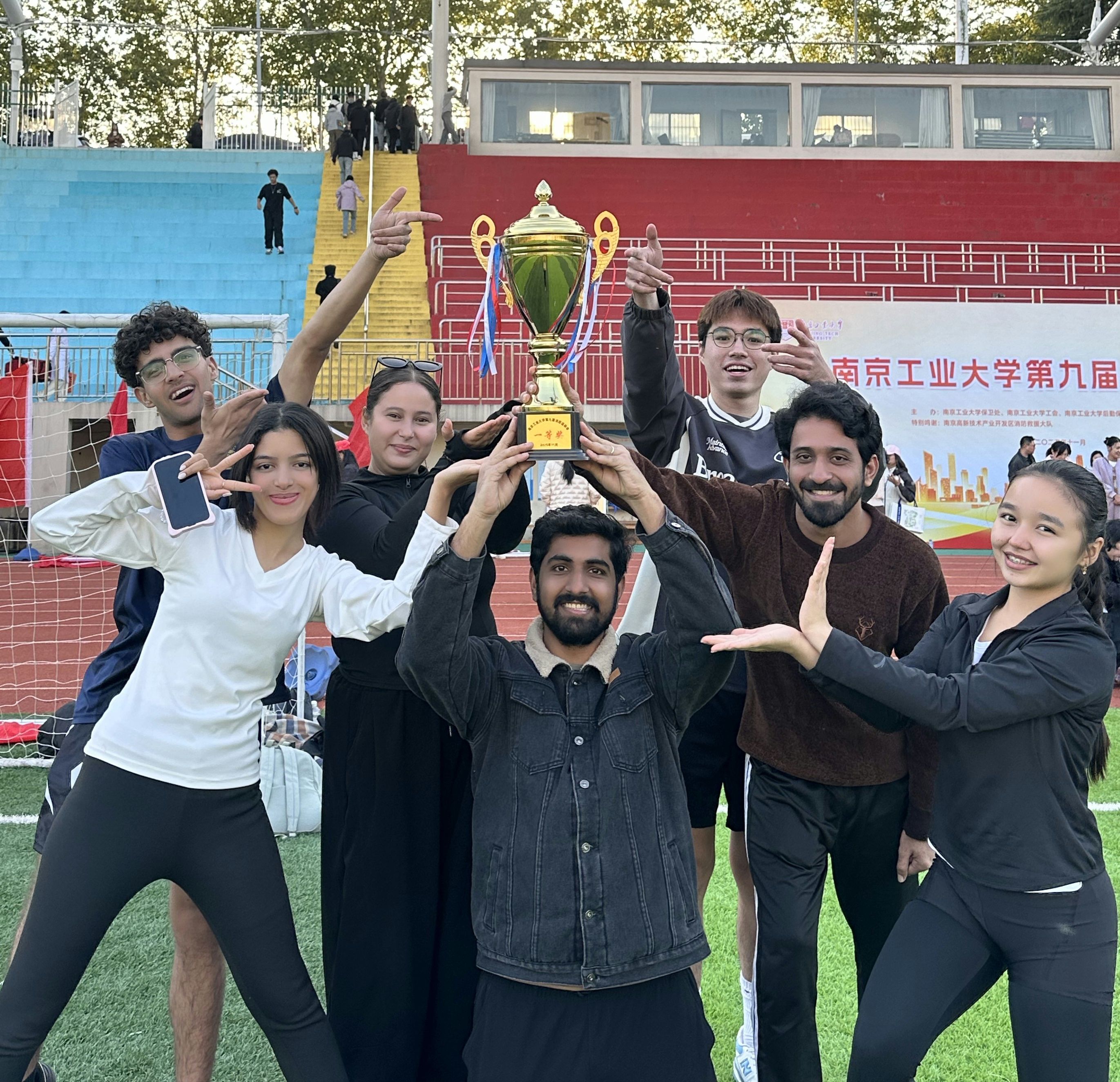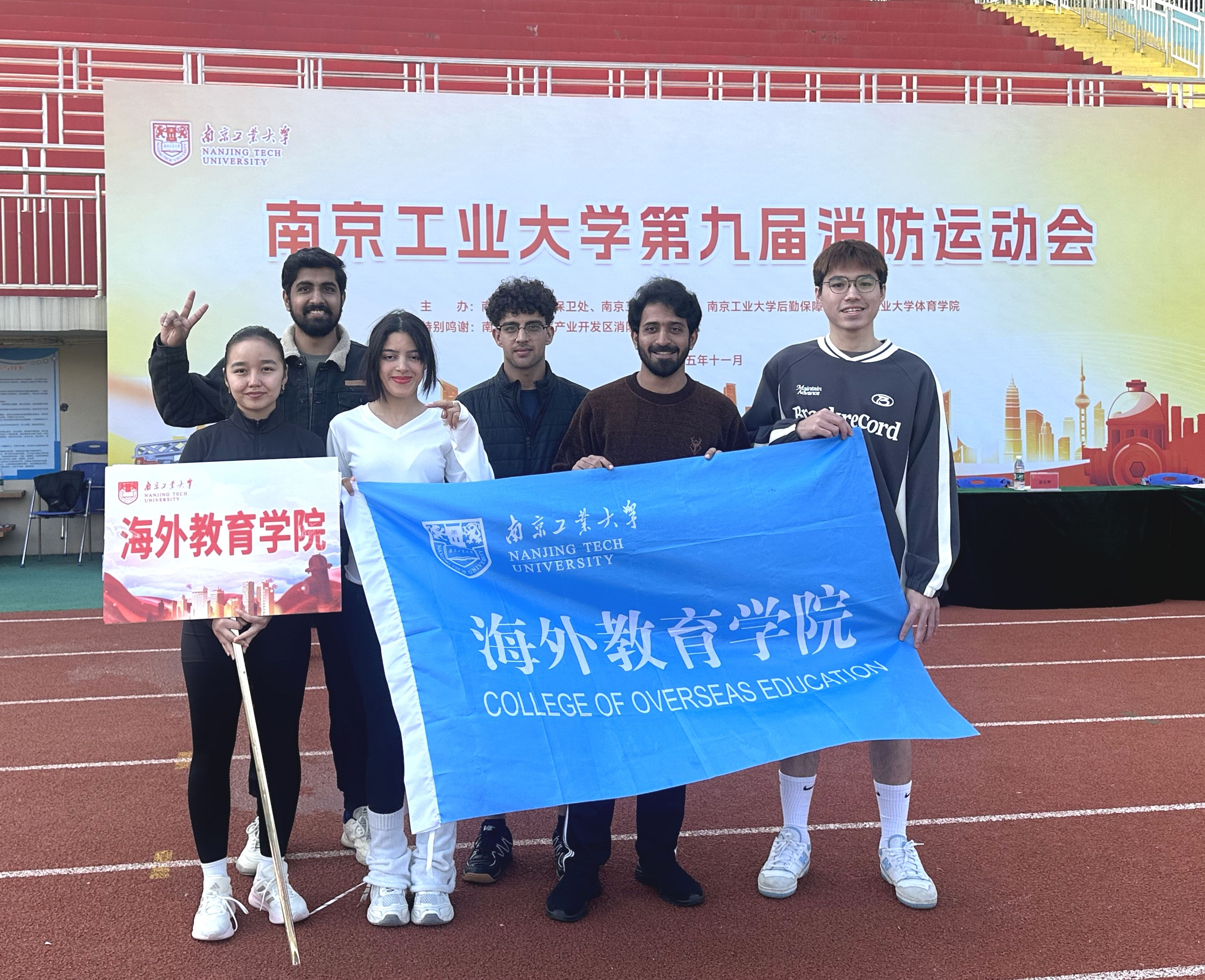 11月12日,南京工业大学第九届消防运动会于行健田径场顺利举行。海外教育学院由6名师生组成的代表队参与此次赛事,凭借卓越表现,在比赛中崭露头角,荣获唯一的一等奖,创出留学生团队在消防运动会上的历史最佳成绩。