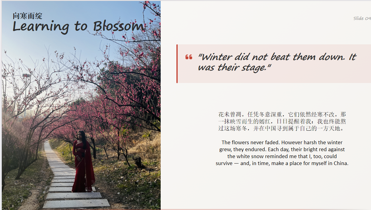 活动期间,留学生们踊跃提交作品,展现了极高的参与热情。经评审,每个模块分别产生一等奖1名、二等奖2名、三等奖3名。这些获奖作品凝聚了同学们的智慧与汗水,学院将通过多种形式对优秀作品进行宣传展示,既表彰先进,也为全体留学生搭建文化交流与相互学习的平台,在欣赏中增进理解、汲取灵感。