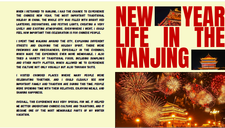 海外教育学院于2026年寒假期间成功举办了第二届“寒假不寒冷,乐学南工大”品牌主题活动,留学生们积极参与,通过五大模块的实践与创作,展现了多元文化的独特魅力,让留学生们在第二故乡度过了一个温馨而充实的假期。